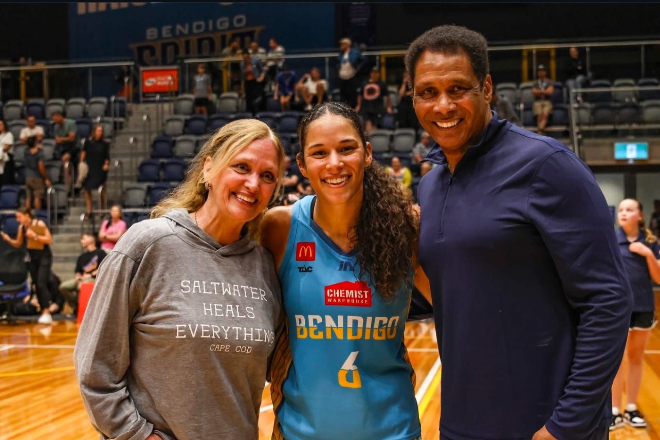 During a visit from her parents, Steve and Ginni Burton, Veronica Burton relished precious moments with them while away from the WNBL’s best Bendigo Spirit. They sat atop the league at 19-3 in the regular season and defeated the Townsville Fire in the Grand Final.